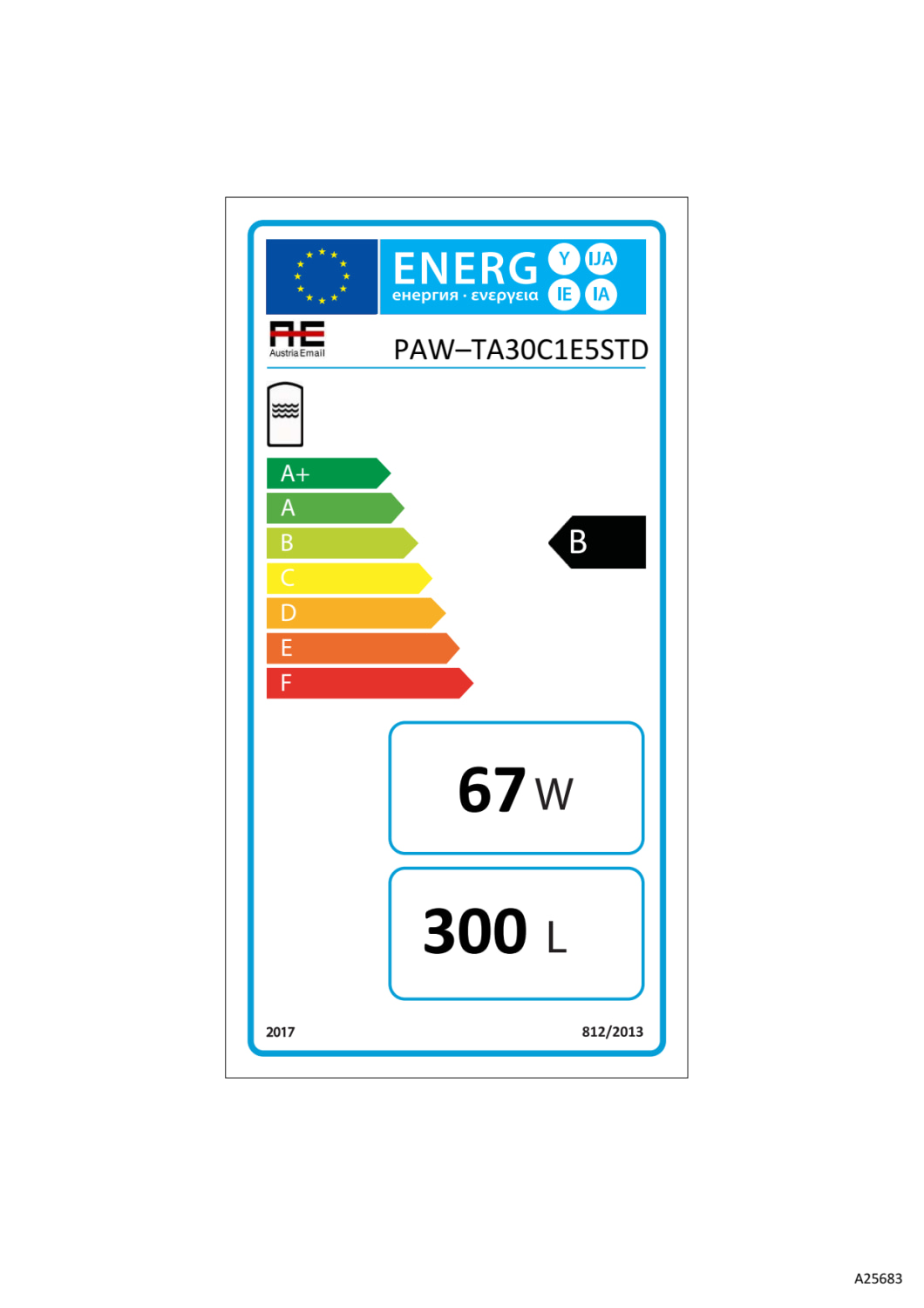 Energitab ved 65 ° C¹/24h 1,61 kWh