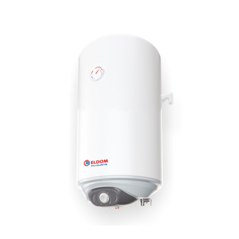 Væghængt el-varmtvandsbeholder på 50 liter med emaljeret korrosionsbeskyttelse. Energieffektivitetsklasse C.