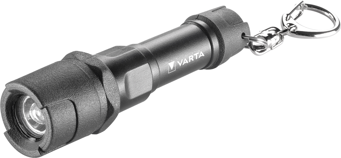 Ekstremt robust lommelygte fra Varta i aluminium-titanium legering. Testet til fald fra 9 meter og IPX4 vandafvisende med drejehoved.