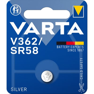 VARTA SILVER Coin V362, SR58. Denne knapcelle er på 1,55V og er af typen sølvoxid. Leveres i pakker af 1 stk.