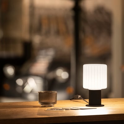Elegant plissé glasskærm til indendørs brug. Skab en hyggelig atmosfære med denne smukke detalje.