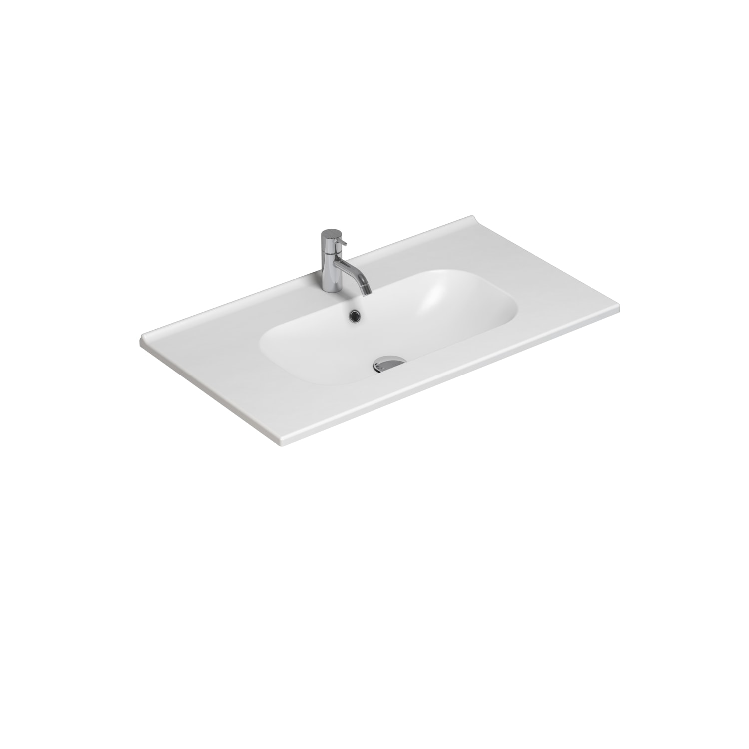 Tidløs og minimalistisk Dansani Kantate vask med tyndt design og god frasætningsplads. Fremstillet i porcelæn med en stærk, robust og rengøringsvenlig overflade.