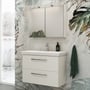 Elegant Lotto vask fra Dansani i hvid porcelæn. Mål: 85x48 cm. Perfekt til badeværelset med sit stilrene og funktionelle design.