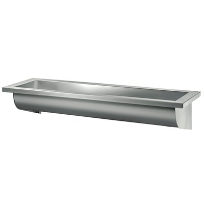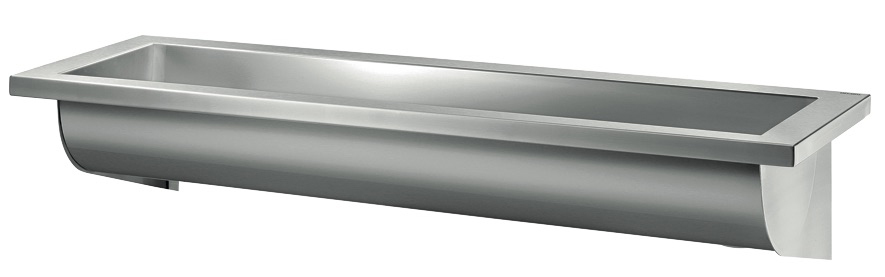 Vaskerende i rustfrit stål med satin finish. Vægmonteret model (1200 x 400 x 250 mm) der leveres med fastgørelsesdele. Afløb placeret til højre (1 1/2"). Uden overløb.