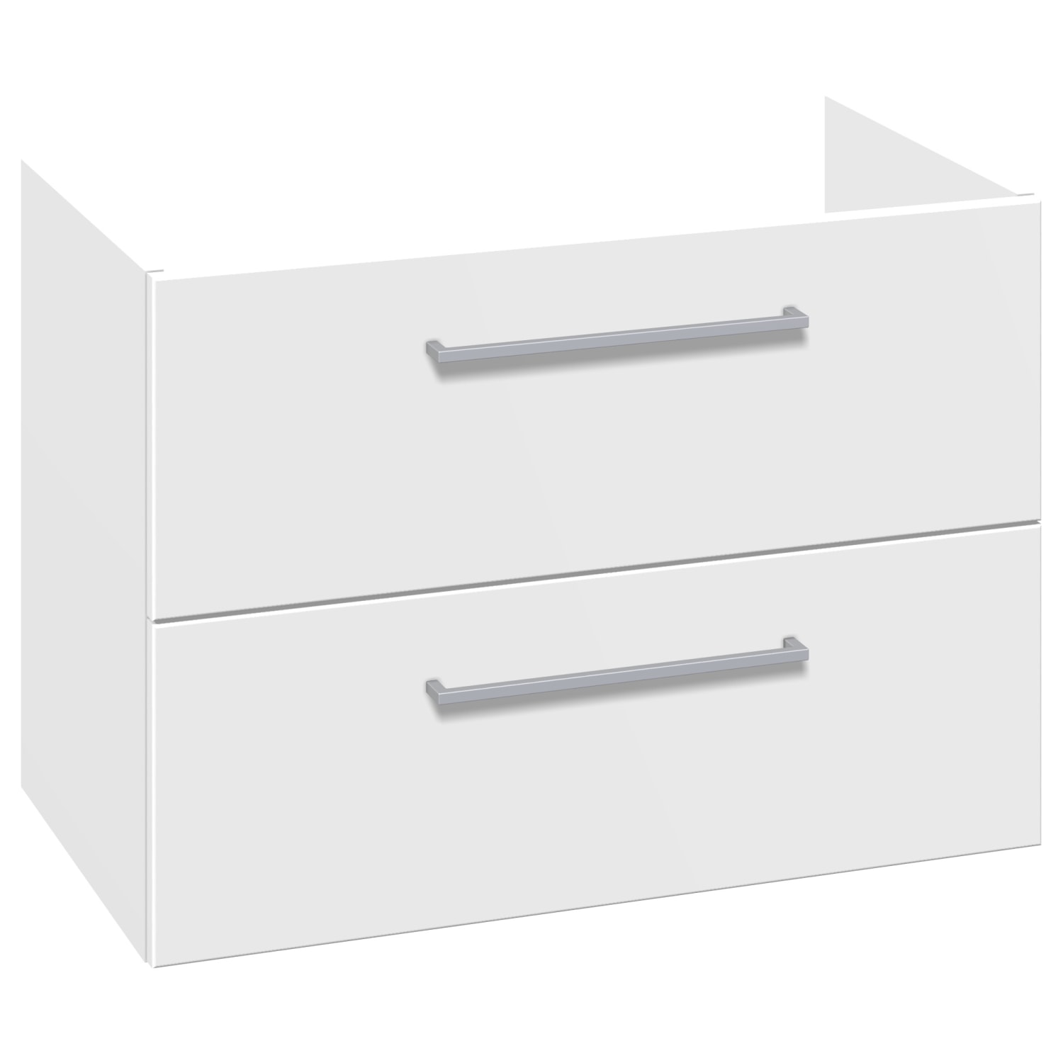Dette funktionelle vaskeskab kombinerer stilrent design med praktisk opbevaring. Med sin glatte, hvide matte overflade passer skabet perfekt ind i ethvert moderne badeværelse. De to rummelige skuffer giver god plads til badeværelsesartikler og holder orden i rummet.