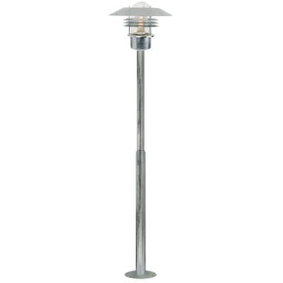 Den galvaniserede overflade gør lampen modstandsdygtig i det nordiske klima. Vi anbefaler lamper i galvaniseret stål til kystnære områder. Tilkøb eventuelt basen til nedgravning, som passer til dette produkt.