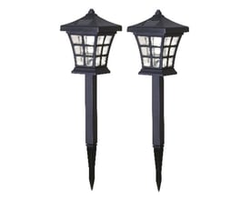 Veli solcelle jord-spots med spyd i stål. 2 stk lyskilder, IP44. Automatisk aktivering via sensor.