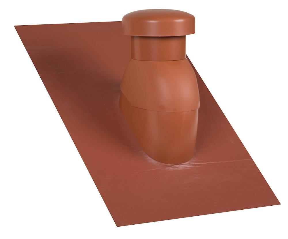 Universal ventilationshætte Ø200 mm til taghældning 5-45°. Med påmonteret Sabetoflex inddækning og kondensisoleret rør.