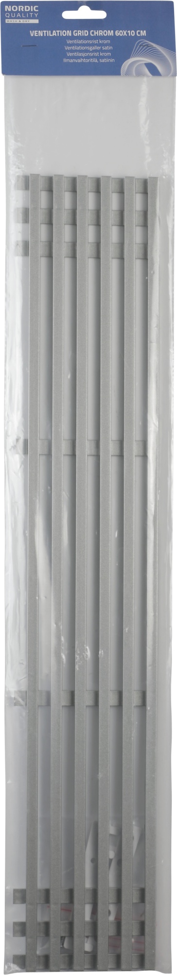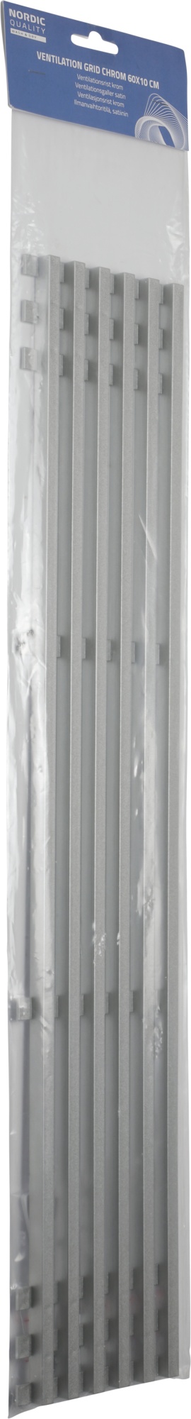Ventilationsrist, 60x10 cm, i krom. Optimal ventilation med stilrent design.
