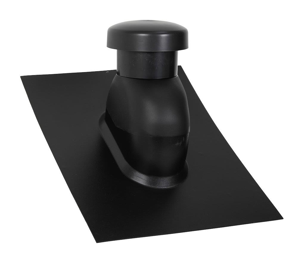 Universal ventilationshætte til paptag, Ø125 mm, til taghældning 5-45°, sort. Med kondensisoleret nippelrør.