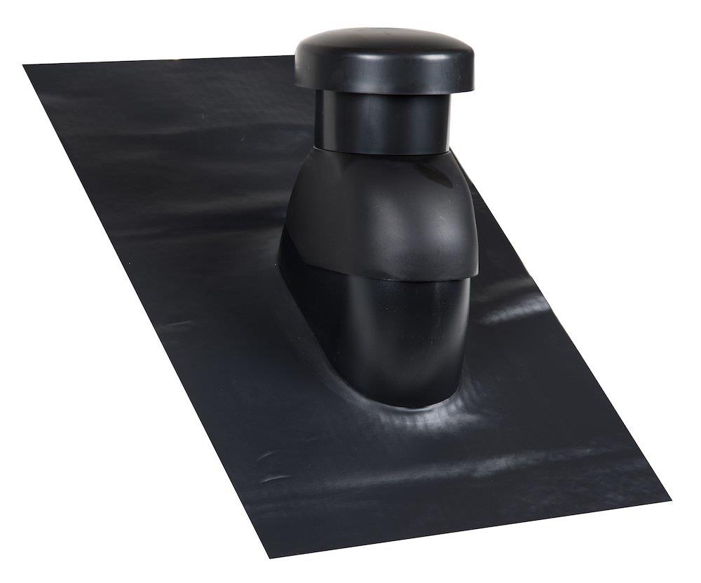 Universal ventilationshætte Ø160 mm til taghældning 5-45 grader. Sort med kondensisoleret rør og Sabetoflex inddækning.