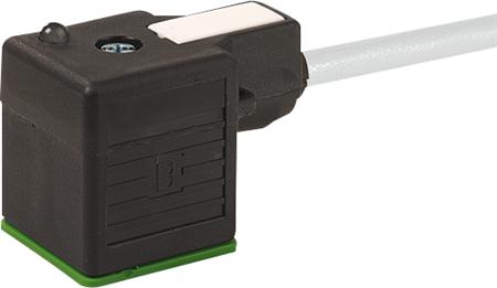 MSUD ventilstik form A 18mm med LED og friløbsdiode, 24VAC/DC, med 20 meter sort PVC kabel (3x0,75mm²).