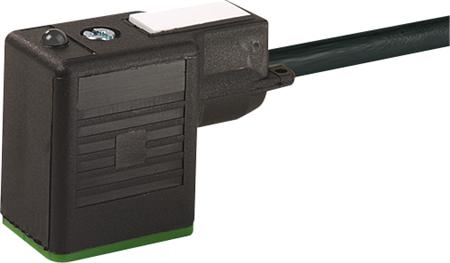 MSUD ventilstik form BI 11mm med LED og friløbsdiode til 24VAC/DC. Inkluderer 3x0,75mm2 sort PUR kabel, UL/CSA godkendt og egnet til kabelkæde. 5 meter.