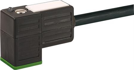 MSUD ventilstik form C 8mm med LED og friløbsdiode, 24VAC/DC, kabel 3x0,75mm2, sort PVC, 5 meter. Helstøbt stik med IP67.