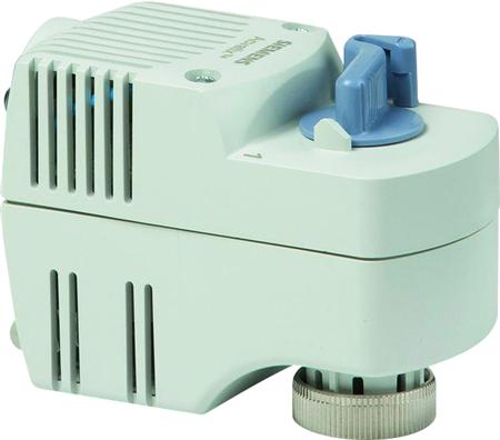 Siemens SFA21/18 elektromotorisk ventil aktuator med 200 N, 2.5 mm vandring og AC 230 V, 2-punkt styring.