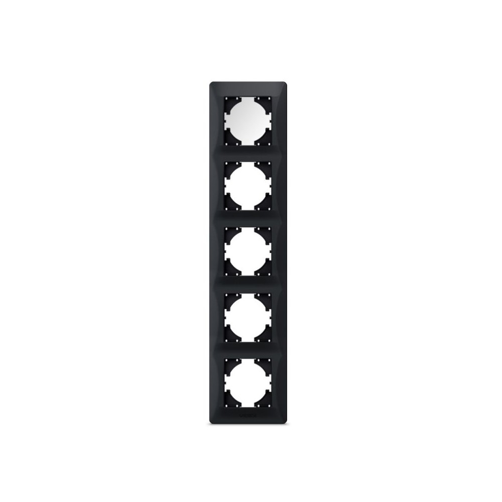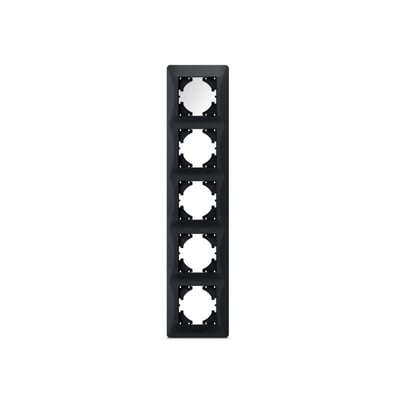 Elegant og funktionel 5-polet ramme i sort finish. Perfekt til montering af stikkontakter og afbrydere. Mål: 370x86x9 mm.