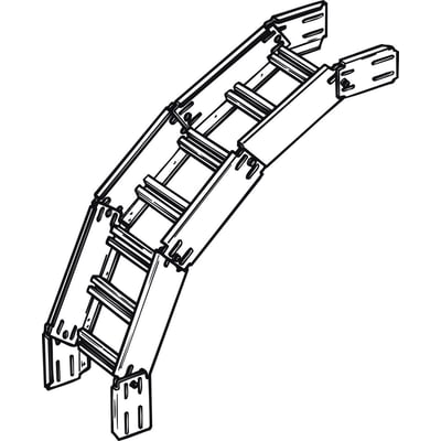Vertikalbøjning Medium GLO-4, 300G fra Legrand, fremstillet af galvaniseret plade, velegnet til indendørs brug. Til samling med kabelstigen bruges 4 stk. skrue+møtrik M6x10mm.