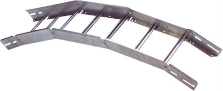 Vertikalbøjning fremstillet af galvaniseret plade, velegnet til indendørs brug. Kræver 4 stk. skrue+møtrik M6x10mm (8200100+8200200) til samling med kabelstigen.