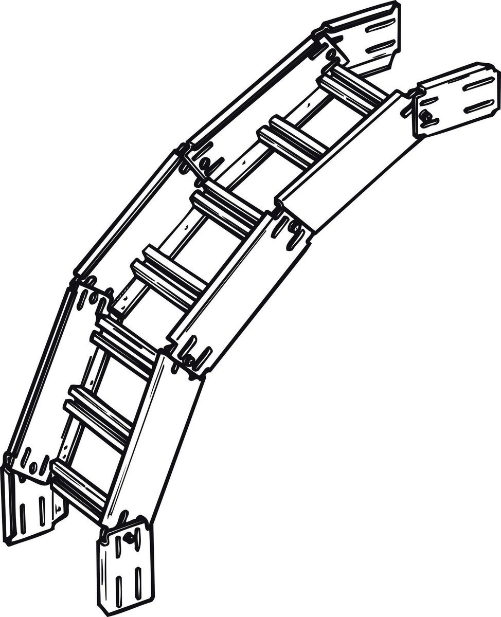 500 mm bred vertikalbøjning, fremstillet af galvaniseret plade, velegnet til udendørs brug. Passer til kabelstige MEDIUM GLO-4. Fastgøres med bræddebolt type M616-D.
