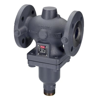 2-vejs ventil VFG21 fra Danfoss med DN100 og kvs værdi på 125. Bruges til fremløb/returløb med flange.