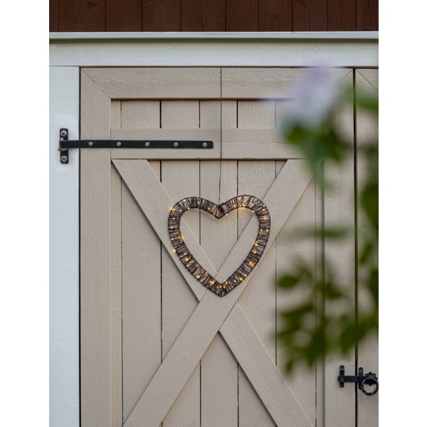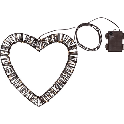 Vicke hjerte fra Star Trading i metal, 40 cm, med varmt hvidt lys og timerfunktion. Ideel til indendørs brug.