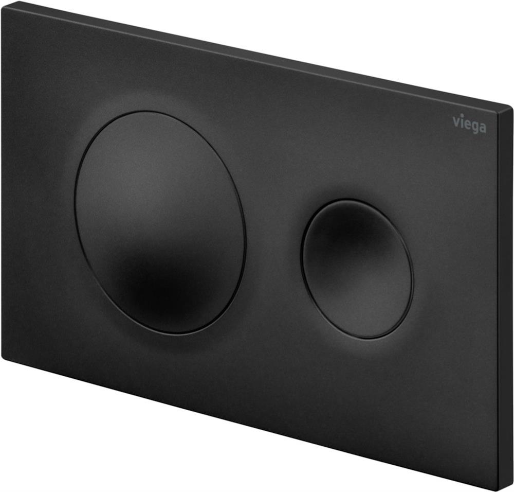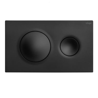 Viega Visign Style 20 betjeningsplade i matsort plast til Prevista indbygningscisterner. Med 2-skyls teknologi og manuel aktivering fra front eller top.