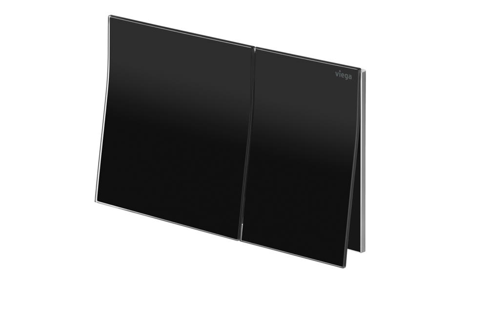 Elegant Viega WC betjeningsplade i sort design, der passer til alle Prevista indbygningscisterner. Betjeningen er manuel og foregår forfra med 2-skylsteknik.