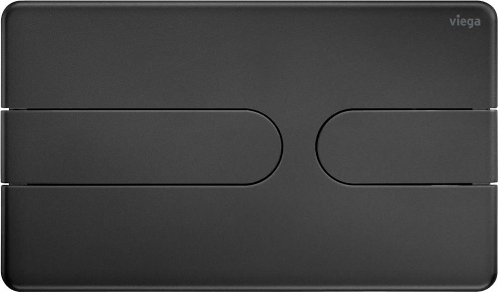 Viega WC betjeningsplade i mat sort. Passer til alle Prevista indbygningscisterner. Manuel aktivering fra front eller top med 2-skylsteknik.