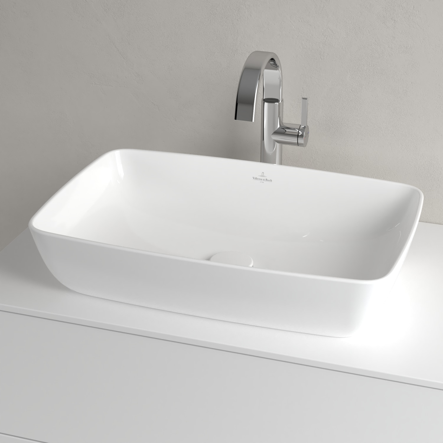 Villeroy & Boch Artis 4172 topmonteret vask i hvidt porcelæn/keramik. Elegant firkantet design uden hanehul og overløb.