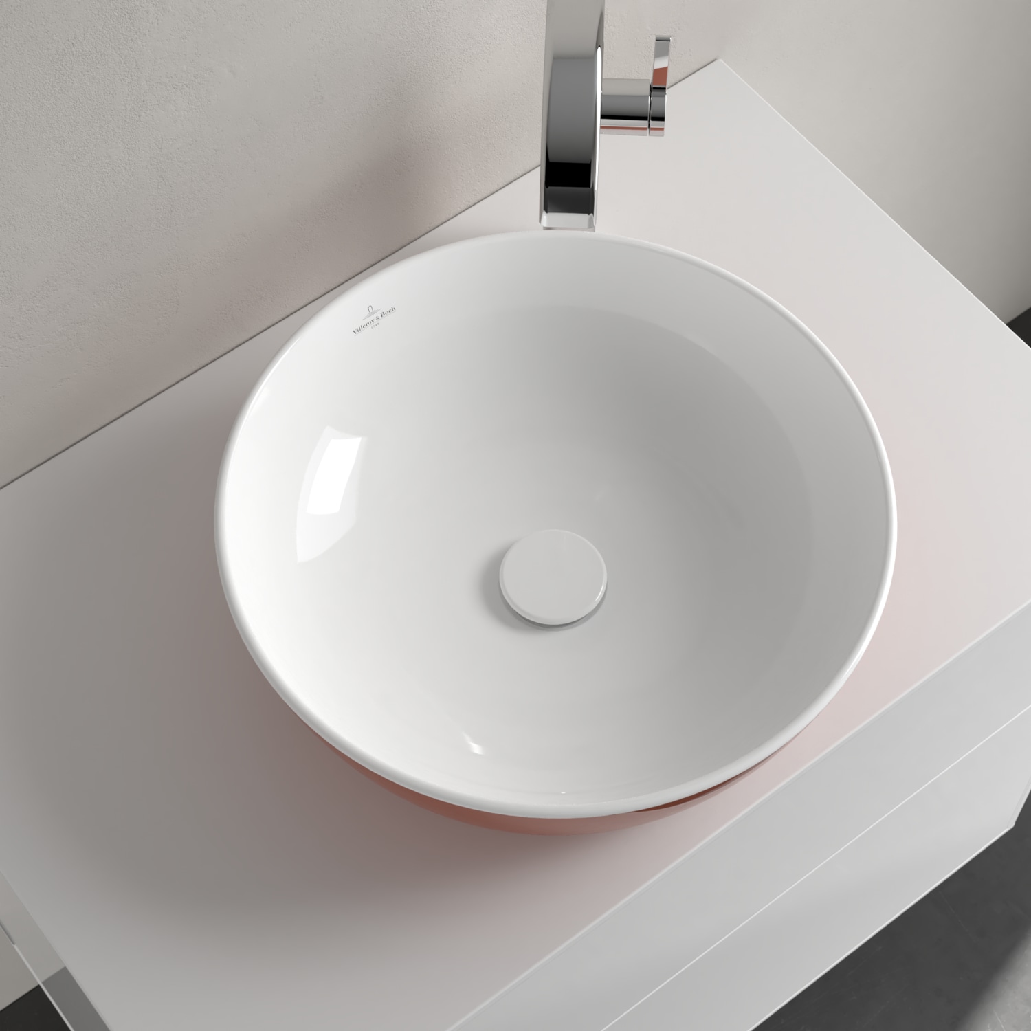 Elegant, bordstående vask fra Villeroy & Boch. Fremstillet i porcelæn/keramik med en diameter på 43 cm og en højde på 130 mm.