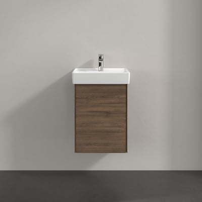 Dette elegante Villeroy & Boch Collaro underskab er designet til håndvaske og tilfører et stilfuldt touch til ethvert badeværelse. Med sin flotte overflade i eg og højrehængte montering kombinerer det æstetik og funktionalitet.