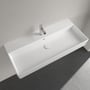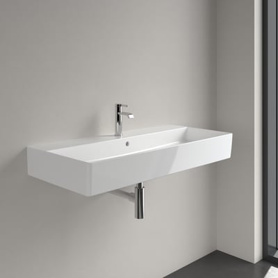 Villeroy & Boch Memento 2.0 håndvask i hvid, med hanehul og overløb. Rengøringsvenlig overflade og firkantet design.