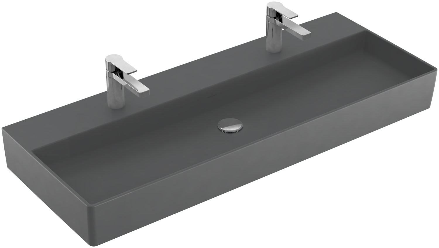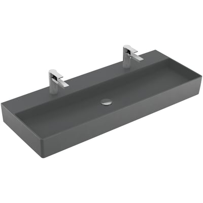 Villeroy & Boch Memento 2.0 håndvask i grå. Elegant firkantet design, 120 cm bred, med hanehul og vægmontering.