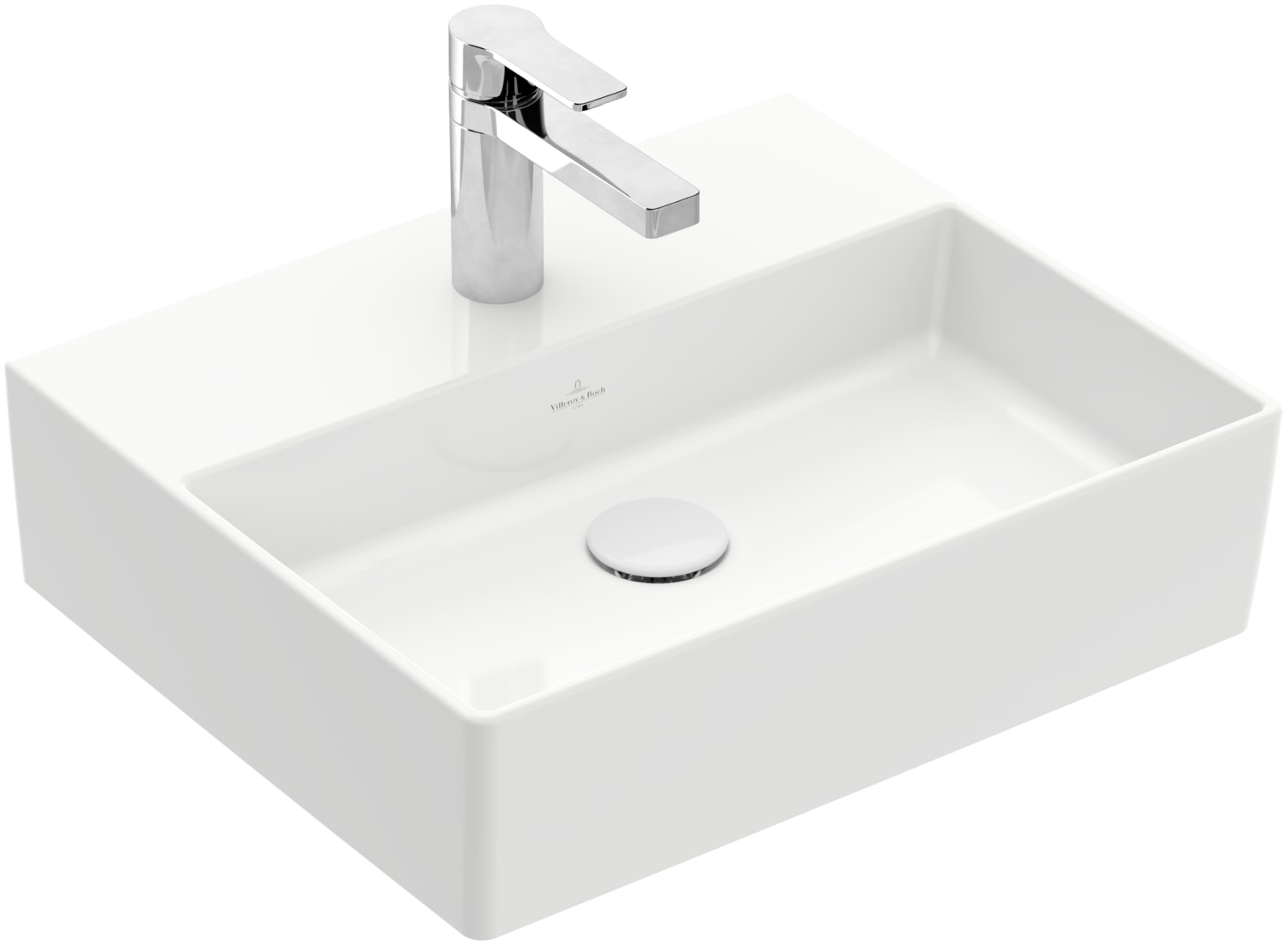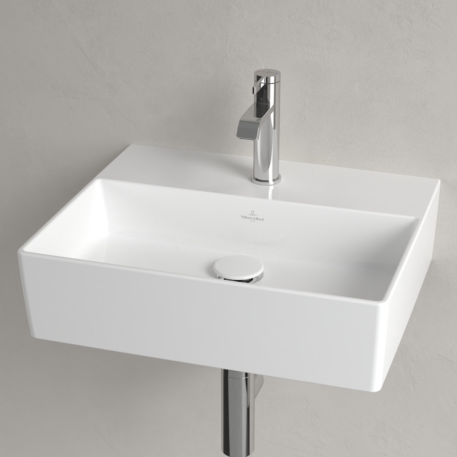 Elegant og rengøringsvenlig håndvask fra Villeroy & Boch. Vægmonteret, firkantet design med hanehul.
