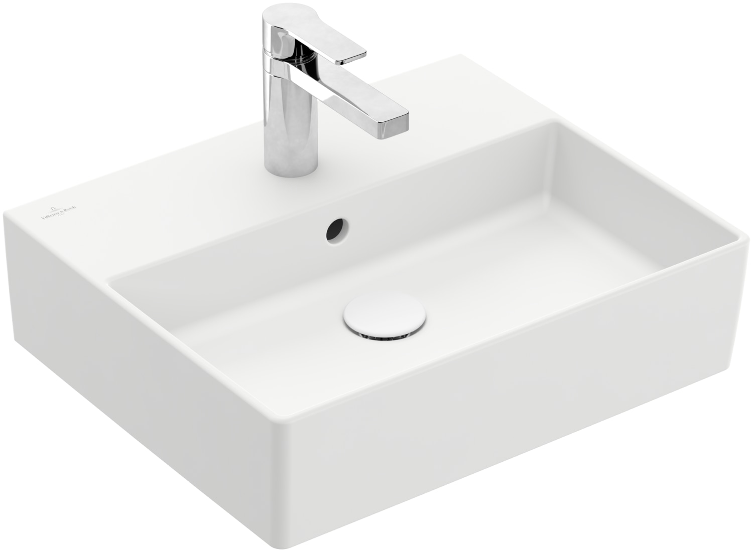Villeroy & Boch Memento 2.0 håndvask i hvid porcelæn. Møbelvask med firkantet design, 50 cm bredde og hanehul.