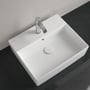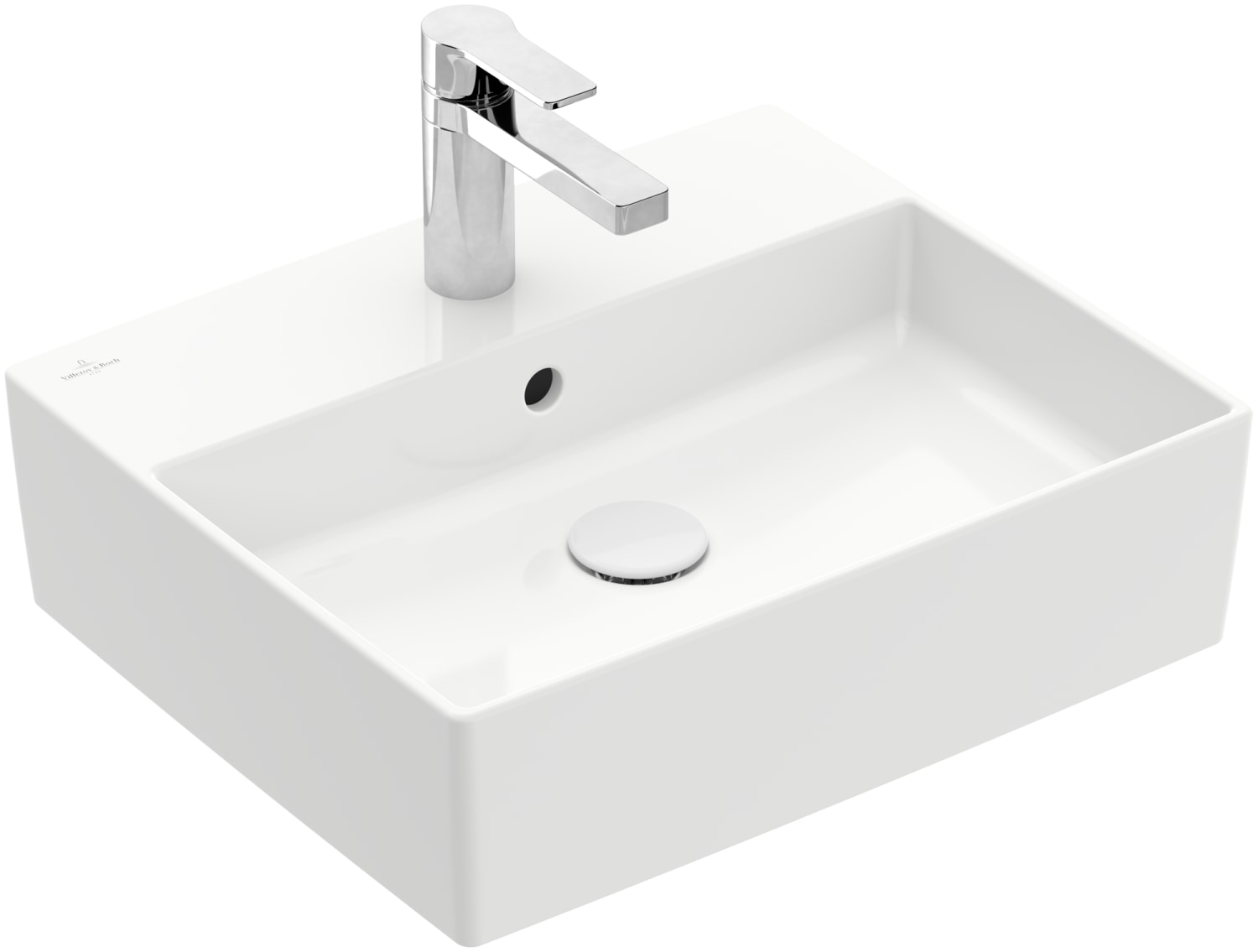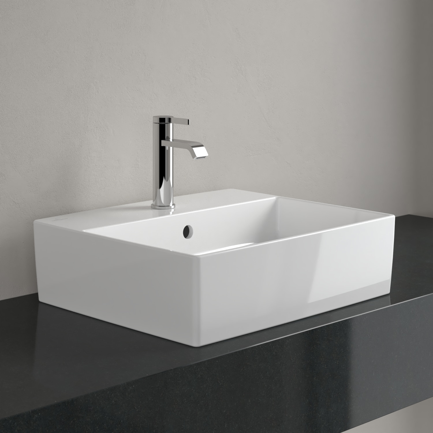 Villeroy & Boch Memento 2.0 surface, 50 cm. Bordstående håndvask i porcelæn/keramik med hanehul og overløb. Firkantet design i hvid.
