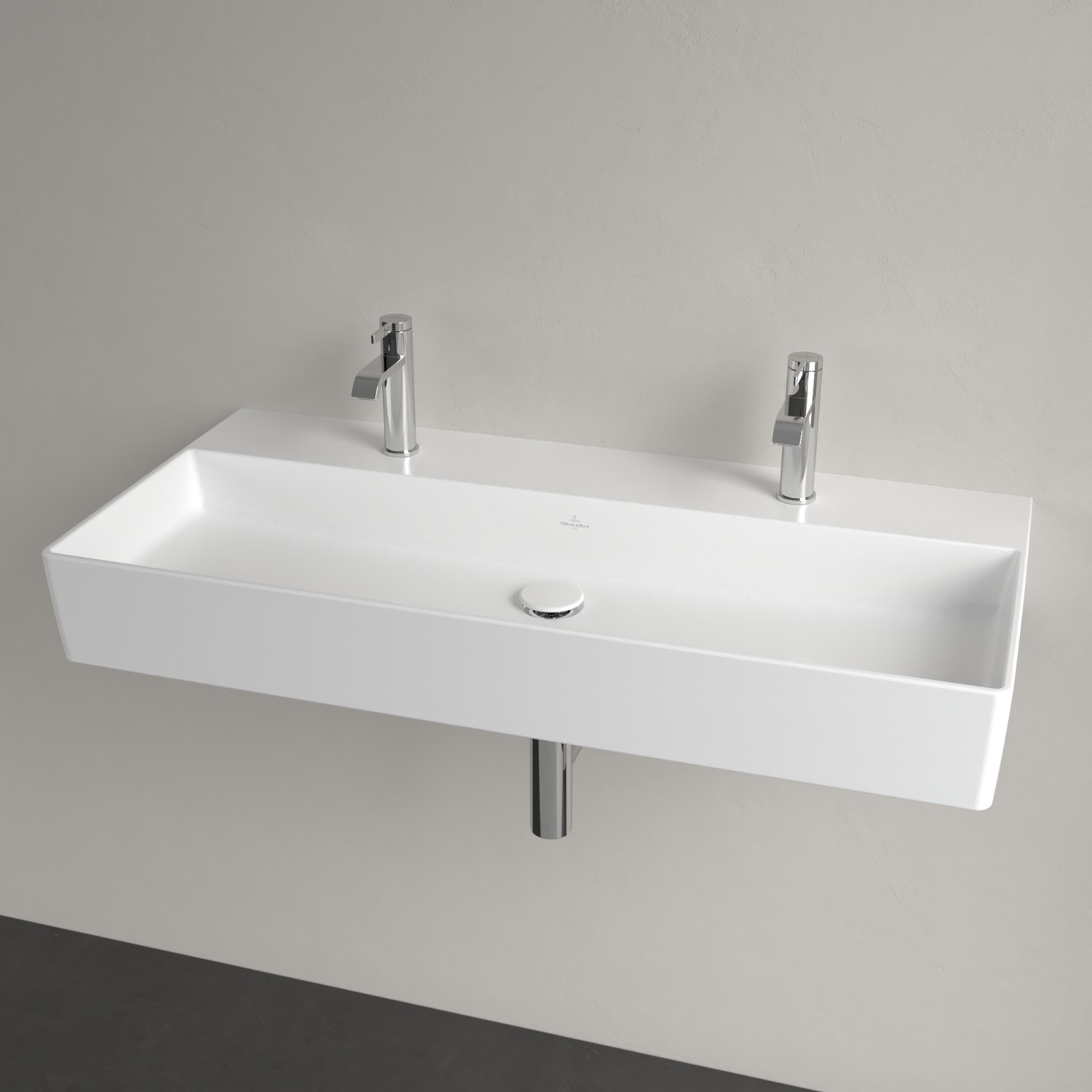 Elegant og minimalistisk vask fra Villeroy & Boch. Fremstillet i porcelæn/keramik og designet til vægmontering.