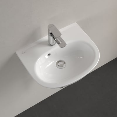 Villeroy & Boch O.novo håndvask i et stilrent design. Håndvasken er udført i porcelæn med en rengøringsvenlig overflade, der gør den nem at vedligeholde. Den buede forkant giver et elegant udtryk, og den er velegnet til vægmontering.