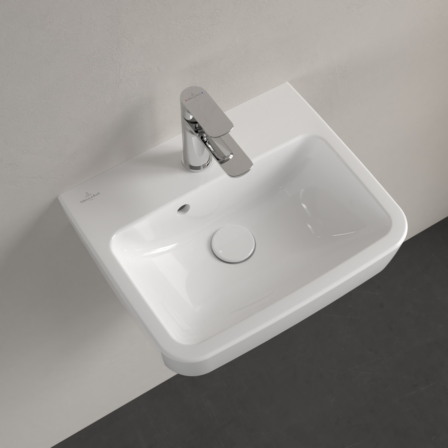 Villeroy & Boch O.novo håndvask i hvidt porcelæn med rengøringsvenlig overflade. Mål: 450 x 370 x 160 mm. Med hanehul og overløb.