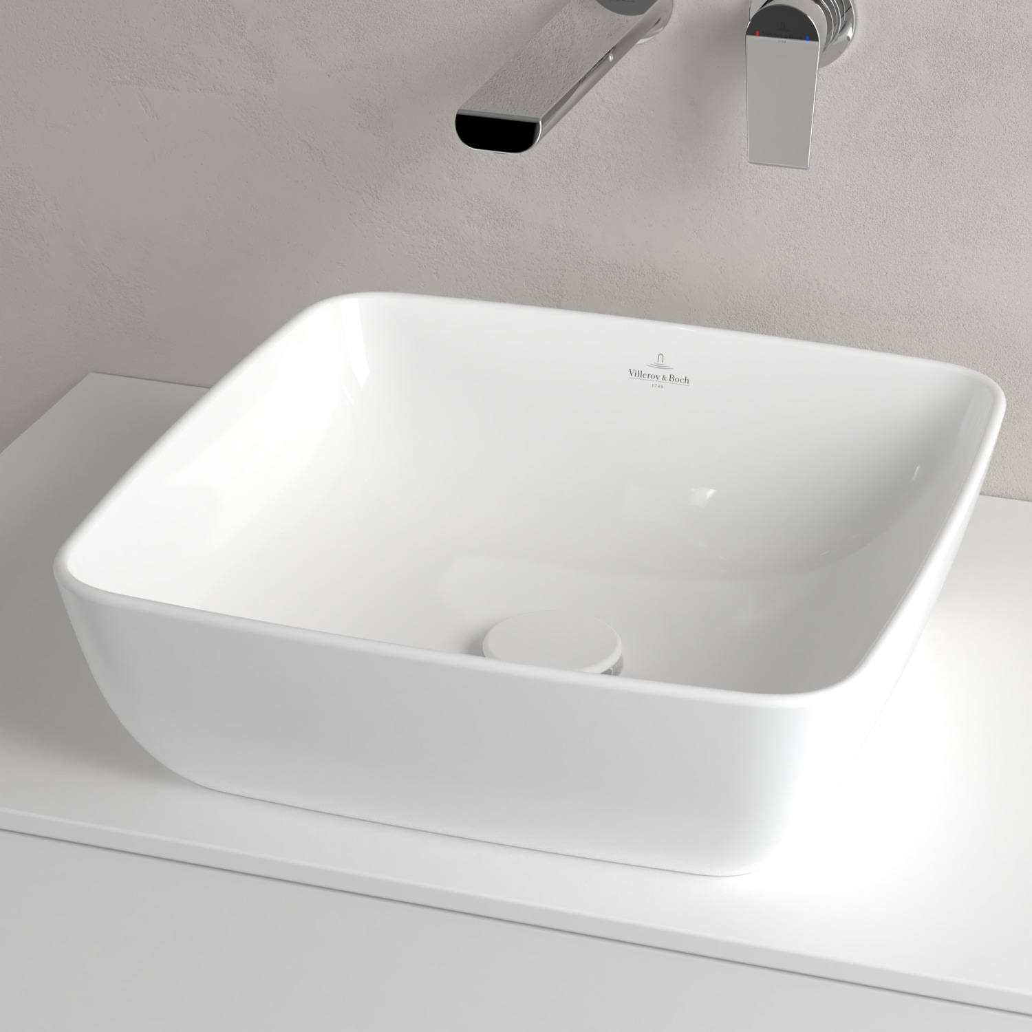 Den firkantede Villeroy & Boch Artis vask er designet til bordstående montering og tilføjer et elegant touch til ethvert badeværelse.