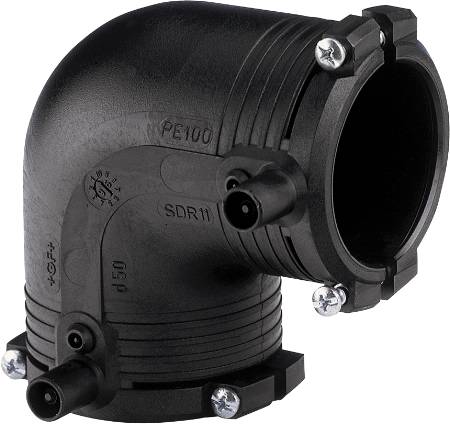PE-svejsevinkel med spidsende til stuk/el svejsning for sikker forbindelse. Anvendelig til gas (maks. 10 bar) og vand (maks. 16 bar). Fremstillet i PE100 SDR11.