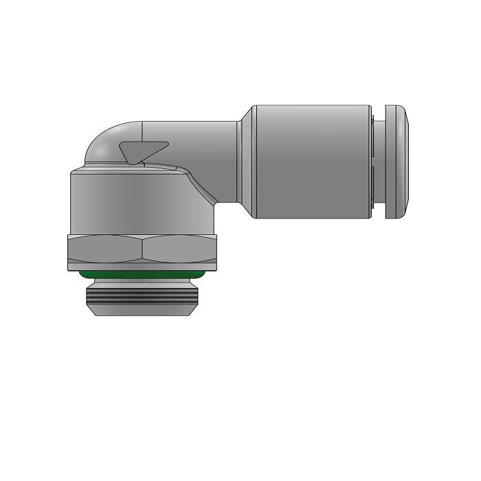 Push-in fitting i syrefast stål, vinkel, drejbar, Ø8, G1/8 BSPP, godkendt til fødevarer.