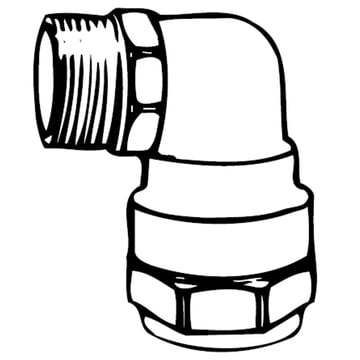 Isiflo – Vinkelovergang i messing, 90° m. kompressionskobling /nippel, 25 mm x ¾"