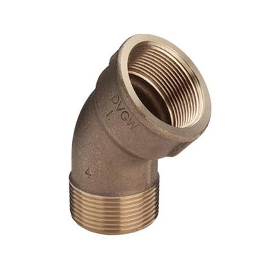 Vinkel 45 grader 2" muffe/nippel gevindfittings af rødgods. Max driftstryk 10 bar (1MPa).