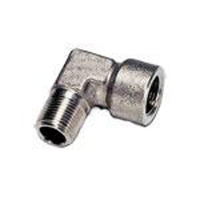 Vinkel med udv. BSPT og indv. BSPP gevind. Dimensioner: R1/4 - G1/4. Materiale: messing. Overholder ROHS standarder.