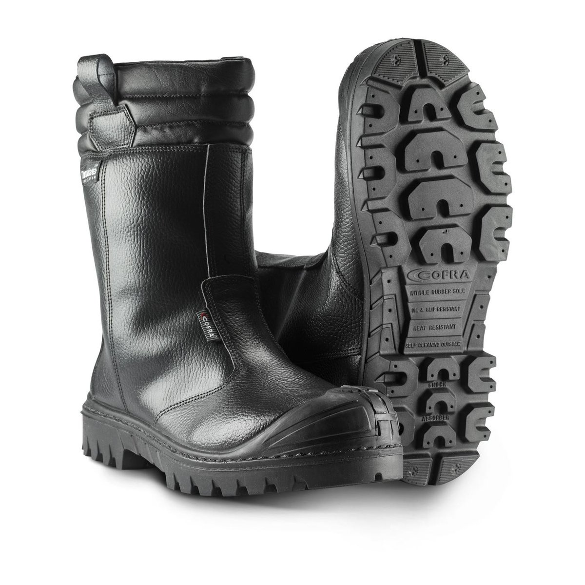 Vandafvisende og komfortabel Sika Footwear vinterstøvle i læder med ekstra bred pasform, ProNose, composite tåværn og fiber sømværn. Størrelse 45.