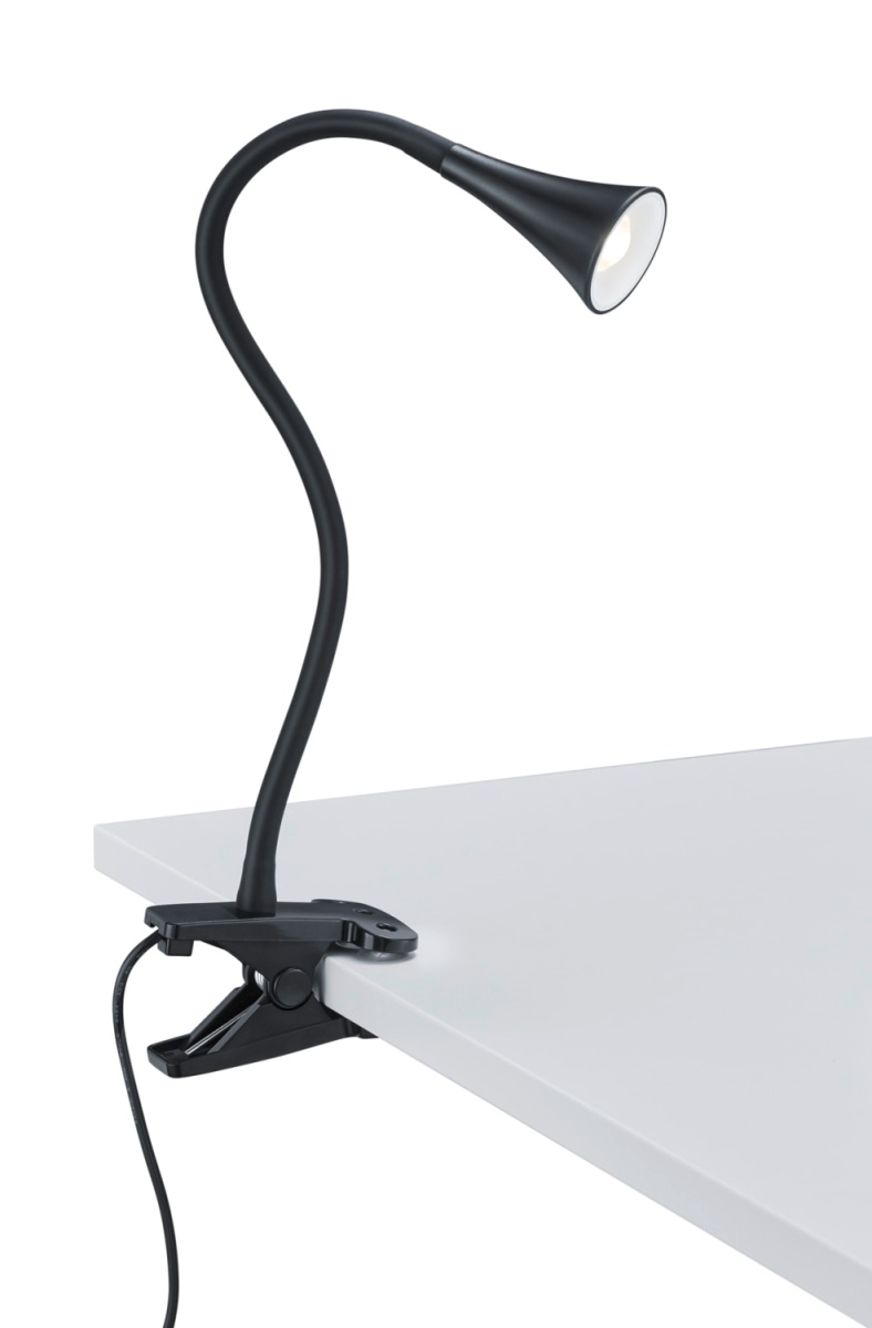 Sort Viper LED bordlampe med klemme fra Trio Lighting. Ideel til indendørs brug, med indbygget LED, afbryder på ledningen og et flot design.