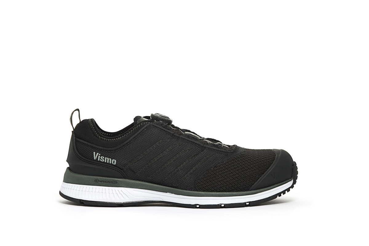 Vismo sikkerhedssko med Boa Fit System for nem lukning. Tekstiloverdel og skridhæmmende ydersål for komfort og sikkerhed.