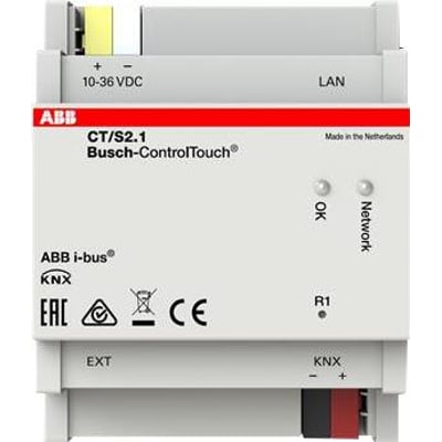 ABB CT/S2.1 Busch-ControlTouch: Simpel KNX-visualisering til smartphones og tablets. Webbaseret idriftsættelse med wizard. Mål: 90x72x60mm.