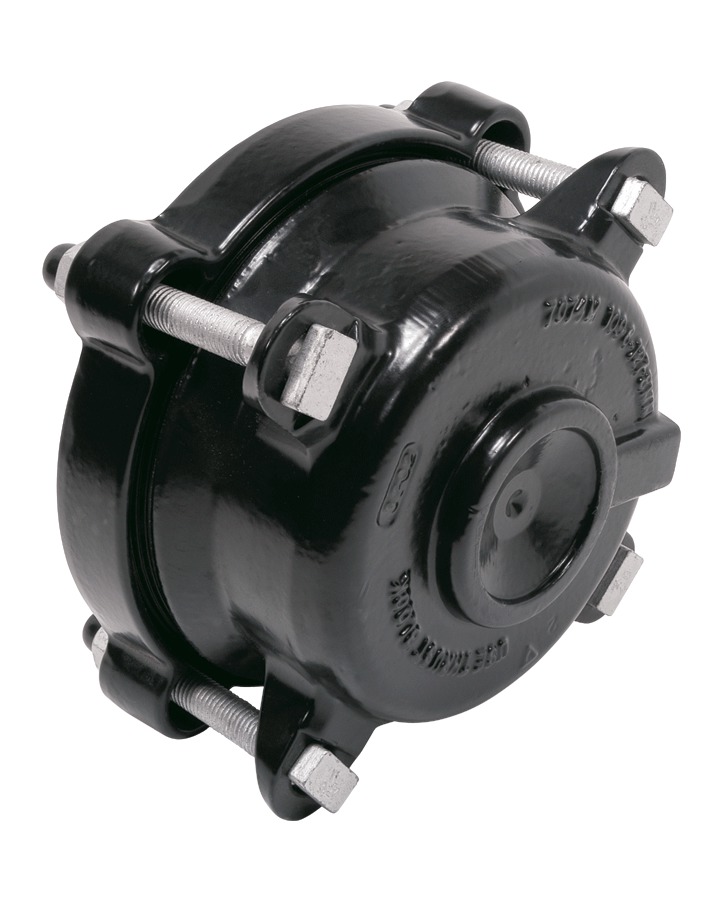 MaxiCap DN100 endedæksel til gas. Diameter: 107-132 mm. Materiale: Duktiljern. Trykklasse: PN6. Gummikvalitet: NBR. Ikke trækfast.